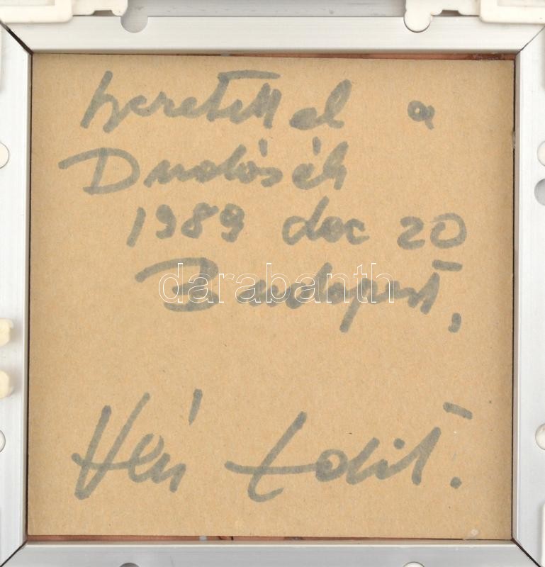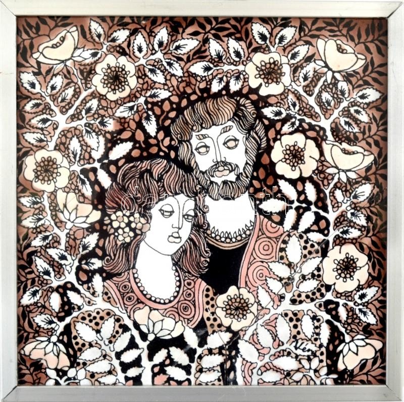 Leírás: Vén Edit (1937-): Szerelmespár. Zománcfesték, kerámia, jelzett a hátoldalán is, keretben, 15×15 cm