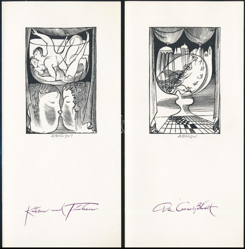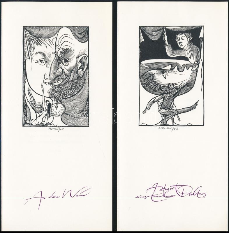 Leírás: Wolfgang Würfel (1932-): Üdvözlő lapok (4 db). fametszet, papír, jelzett, 8,5×6 cm (4×)