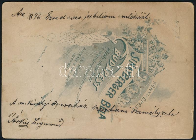 Leírás: 1896 A M. K. Operaház szertári személyzete, fotó, kartonon, elején Wildt Lajos ás Árvay (?) Zsigmond aláírásával, hátulján írással 16x11 cm