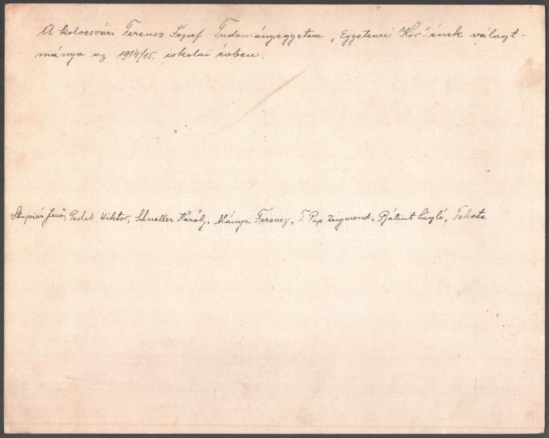 Leírás: 1915 Kolozsvár, a Ferencz József Tudományegyetem ,,Egyetemi Kör"-ének választmánya, vintage fotó, feliratozva, 15x22 cm, karton 23x29,5 cm