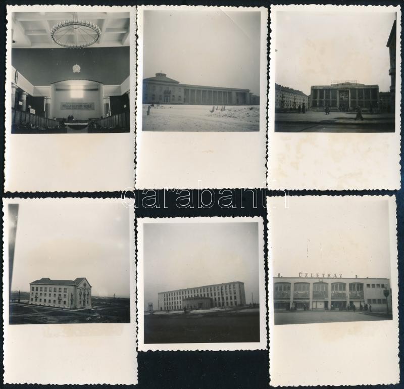 Leírás: 1955 Sztálinváros (Dunaújváros), városképek, 12 db fotó, 6×6 és 6×9 cm