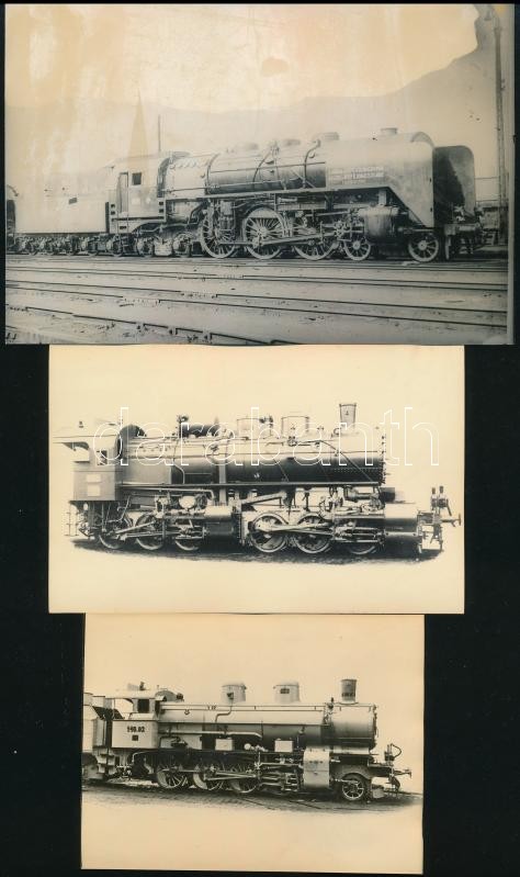Leírás: 3 db régi mozdonyokat ábrázoló fotó, 9×11 és 11×17 cm közötti méretekben