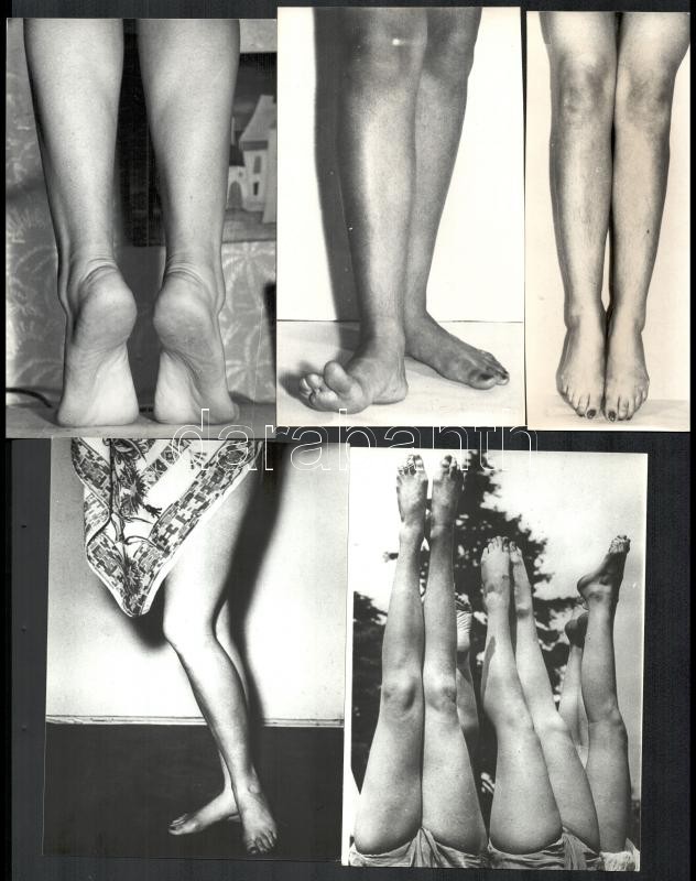 Női lábak, több fotómodell közreműködésével, különböző időpontokban és eltérő helyszíneken készült felvételek, 11 db vintage fotó, 14,5x18 cm és 18x7,2 cm között + 1 db vintage diapozitív 6x4,5 cm