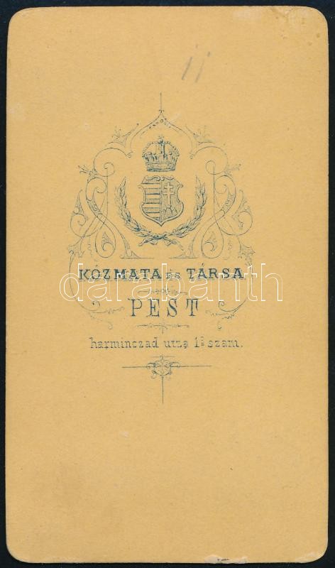 Leírás: cca 1869 Pest, Kozmata és Társa fényképészeti műtermében készült vintage fotó, vizitkártya méretben, 10,5x6 cm