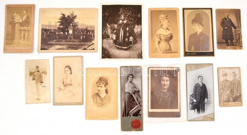 Leírás: cca 1880-1910 13 db érdekes, nagyrészt keményhátú fotó