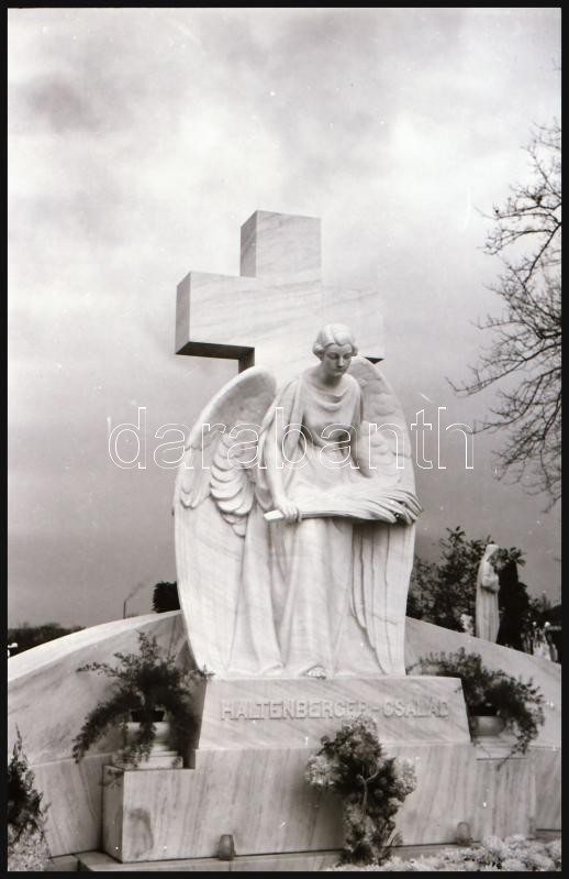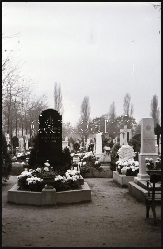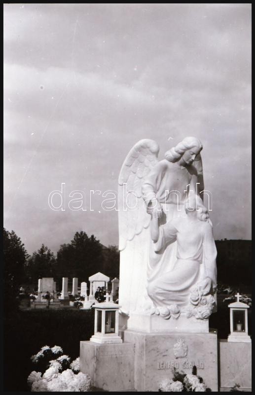 Leírás: cca 1940 36 db budapesti, városképes Leicával készített fotónegatív nagyrészt a fiumei úti Nemzeti Sírkertben készítve negatív tartóban.