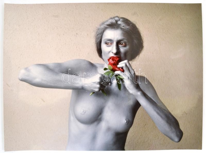 Leírás: cca 1989 Menesdorfer Lajos (1941-2005) budapesti fotóművész hagyatékából, feliratozott, vintage fotóművészeti alkotás (A virág sikolya), 30x40 cm