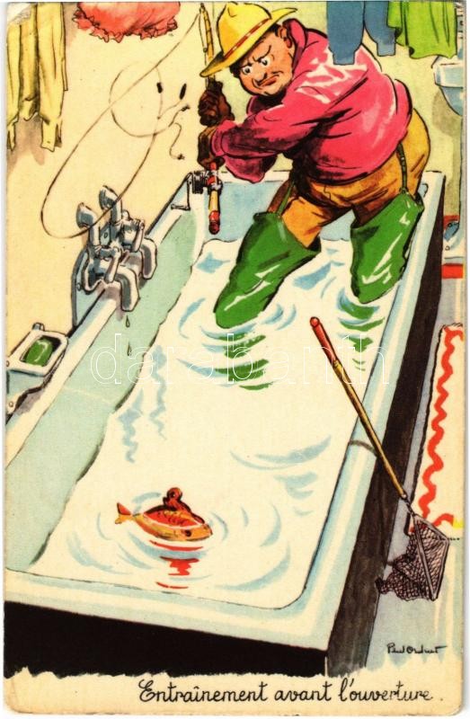 Entrainement avant l'ouverture / French fishing humour art postcard s:... https://www.darabanth.com/hu/370-Gyorsarveres/370.0/Kepeslapok/Humor~1500065/Entrainement-avant-louverture-French-fishing-humour-art-postcard-s-Paul-Ordner-EK~II2157196