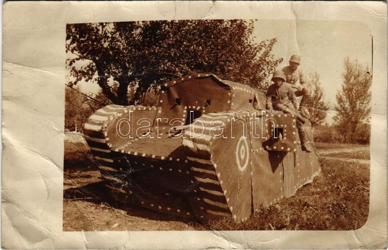 1918 Olasz harctér, oktatásra készült legújabb angol gyors tank típus (szurkos papírból) / Italian front, K.u.K. military, tank made for education. photo (gyűrődések / creases)