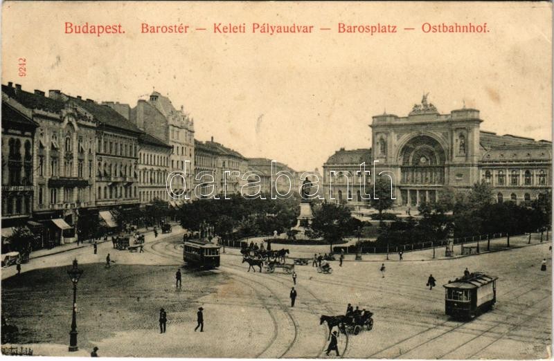 1909 Budapest VII. Baross tér és szobor, Keleti pályaudvar, villamosok... https://www.darabanth.com/hu/370-Gyorsarveres/370.0/Kepeslapok/Magyarorszag~1500004/1909-Budapest-VII-Baross-ter-es-szobor-Keleti-palyaudvar-villamosok-Arany-Sas-szalloda-Erzs~II2157715