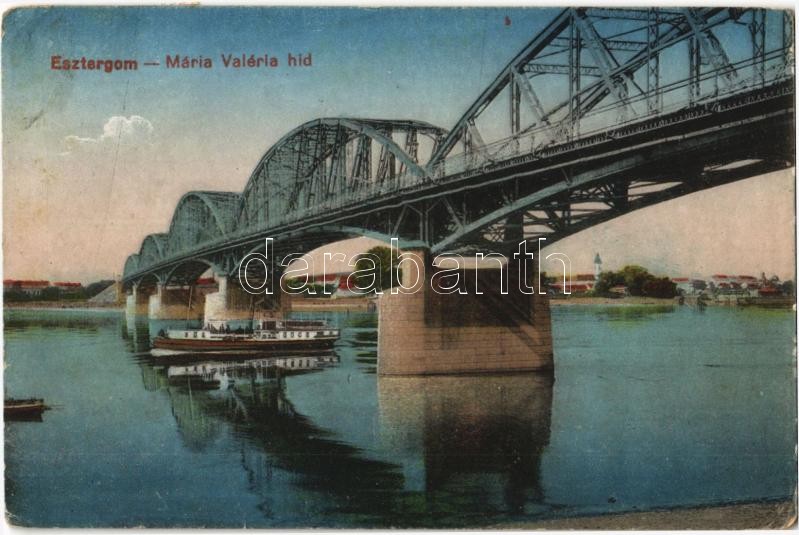 Esztergom, Mária Valéria híd, gőzhajó. Vasúti Levelezőlapárusítás 8854... https://www.darabanth.com/hu/370-Gyorsarveres/370.0/Kepeslapok/Magyarorszag~1500004/Esztergom-Maria-Valeria-hid-gozhajo-Vasuti-Levelezolaparusitas-8854-EK~II2151529