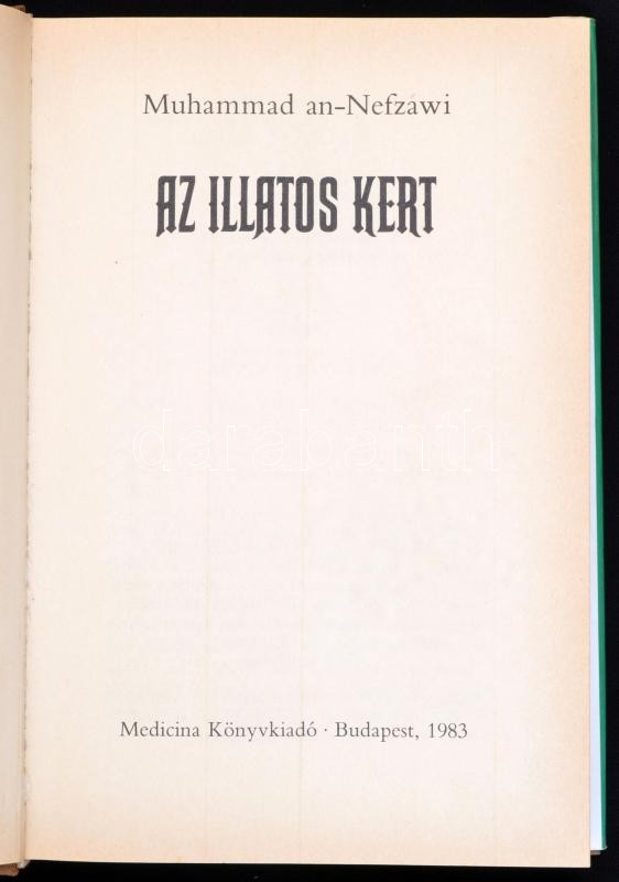 3 db szerelmes-erotikus könyv: A leány meg az isten. Görög szerelmes novellák. Bp., 1988, Magyar Helikon. Kiadói vászon kötésben. Volt könyvtári példány. Alfred de Musset: Gamiani avagy a kicsapongás két éjszakája. Bp., 1989, Únió. Kiadói tűzött papírkötés, sérült gerinccel. Muhammad an-Nefzawi: Az illatos kert. Bp., 1983, Medicina. Kiadói aranyozott egészvászon kötésben, kiadói papír védőborítóban.