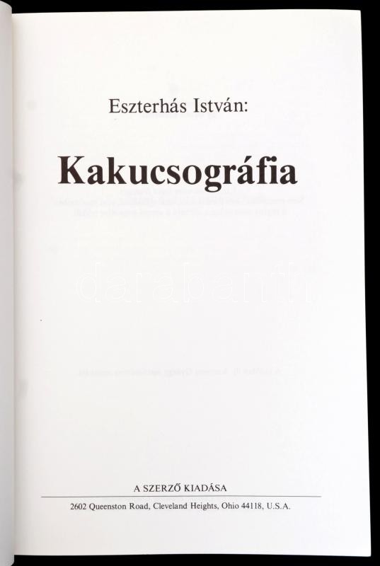 Eszterhás István: Kakucsográfia. Cleveland Heights, 1987, Szerzői kiad... https://www.darabanth.com/hu/370-Gyorsarveres/370.0/Konyvek/Konyvek-Egyeb-ritkasagok~1000022/Eszterhas-Istvan-Kakucsografia-Cleveland-Heights-1987-Szerzoi-kiadas-Emigrans-kiadas-K~II2155081