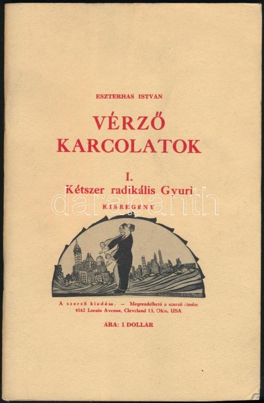 Leírás: Eszterhás István: Vérző karcolatok. I. Kétszer radikális Gyuri. Cleveland, 1958, Szerzői kiadás. Emigráns kiadás. Kiadói papírkötés.