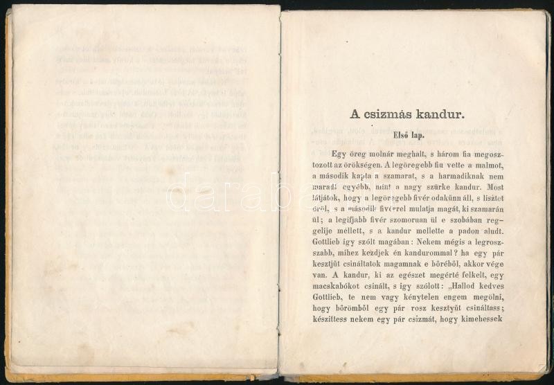 Speckter Ottó: Rege a csizmás kandúrról. Pest, 1864, Lauffer Vilmos. K... https://www.darabanth.com/hu/370-Gyorsarveres/370.0/Konyvek/Konyvek-Mesekonyvek-ifjusagi-irodalom~1000021/Speckter-Otto-Rege-a-csizmas-kandurrol-Pest-1864-Lauffer-Vilmos-Kiadoi-kartonalt-kotes-~II2155638