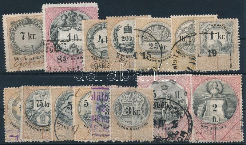 1880 16 db klf okmánybélyeg https://www.darabanth.com/hu/370-Gyorsarveres/370.0/Magyar-filatelia-es-postatortenet/Okmanybelyegek~500016/1880-16-db-klf-okmanybelyeg~II2158600