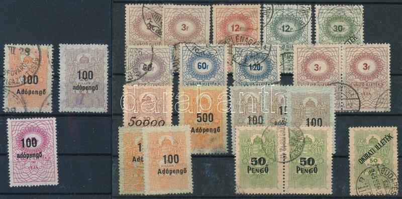 Leírás: 23 db illeték, váltó és adóbélyeg, 2 db stecklapon