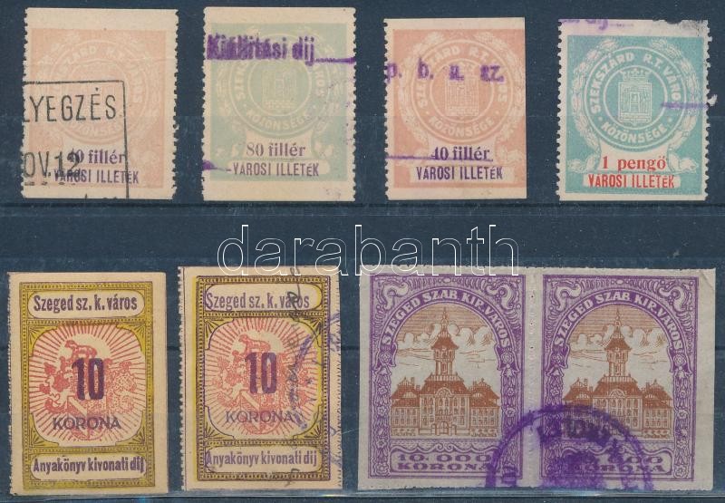 8 db városi illetékbélyeg https://www.darabanth.com/hu/370-Gyorsarveres/370.0/Magyar-filatelia-es-postatortenet/Okmanybelyegek~500016/8-db-varosi-illetekbelyeg~II2158266