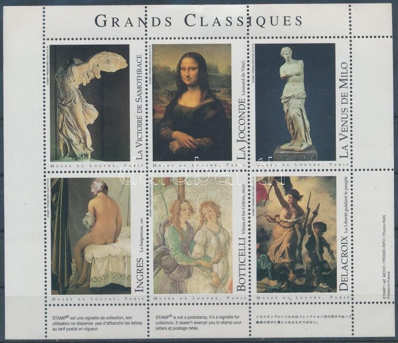 Leírás: Louvre levélzáró 6 db-os kisív Nagy klasszikusok