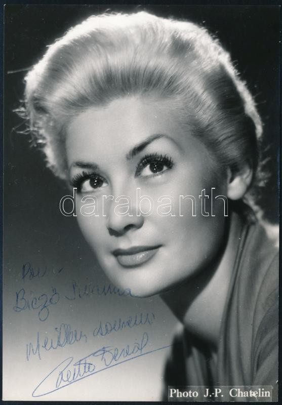 Colette Deréal (1927-1988) francia énekes és színésznő aláírása őt ábrázoló fotólapon, 15x10 cm / autograph signature of Colette Deréal French singer, actress, 15x10 cm