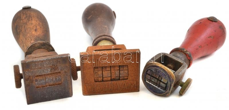 Leírás: 3 db régebbi bélyegző fa nyéllel: Szekszárd MÁV, rozsdás. Báta, kopott. Országos Takarékpénztár, rozsdás