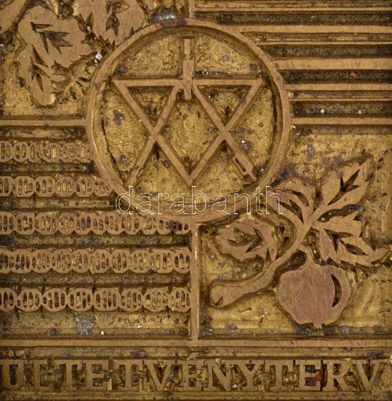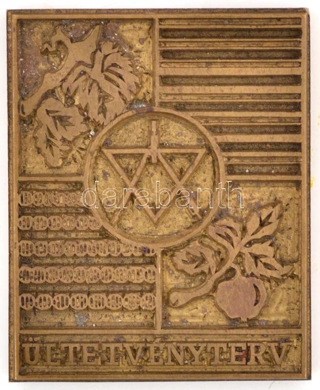 Leírás: Ültetvényterv réz nyomóforma mérnöki jelképekkel. 4x5,5 cm