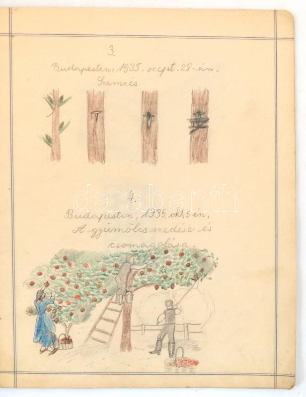 cca 1900-1936 2 db Turul rajztömb, széteső állapotban, egyiknek csak a fedele van meg. 2 db üres rajzfüzet, bejegyzés nélkül, egyik foltos. 2 db rajzfüzet, bejegyzéssel, egyikben növénytermesztéssel kapcsolatos rajzok és írások, másik elváló borítóval.