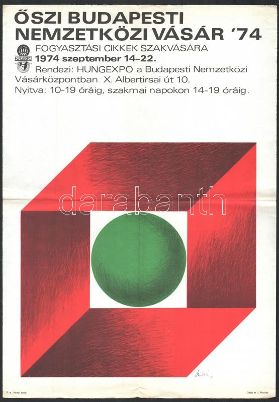 1974 Szilvásy Nándor (1927-2011): Őszi Budapesti Nemzetközi Vásár ... https://www.darabanth.com/hu/370-Gyorsarveres/370.0/Mutargy-papirregiseg-egyeb/Plakat~500030/1974-Szilvasy-Nandor-1927-2011-Oszi-Budapesti-Nemzetkozi-Vasar-74-rendezo-HUNGEXPO-Bp~II2151975