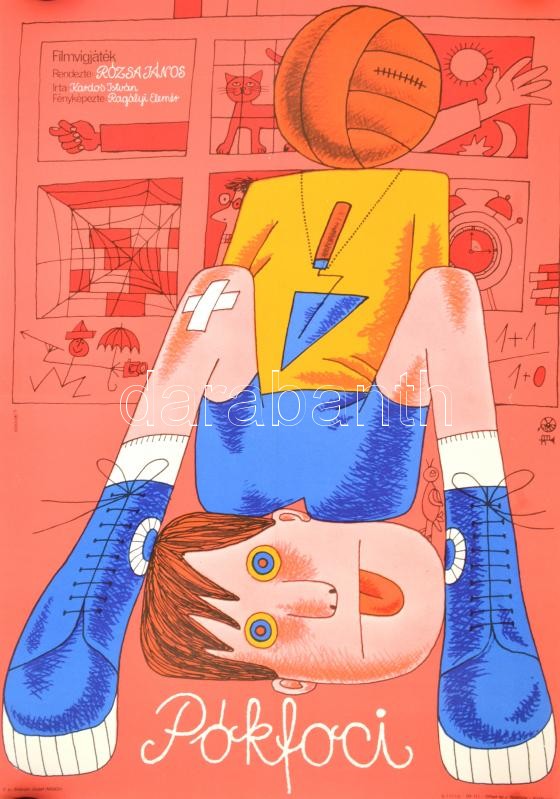 1976 Kálmánchey Zoltán (1942-): Pókfoci, magyar filmplakát, rendezte: Rózsa János, Bp., MOKÉP, Magyar Hirdető, Offset és J.-ny., hajtásnyommal, feltekerve, 57x39 cm.