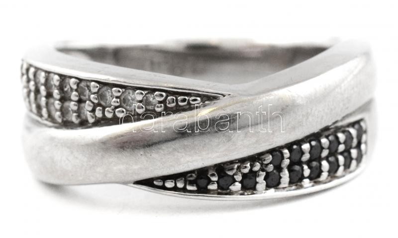 Leírás: Ezüst(Ag) apró fekete és átlátszó kövekkel díszített fonatos gyűrű, jelzett, méret: 56, bruttó: 6,2 g