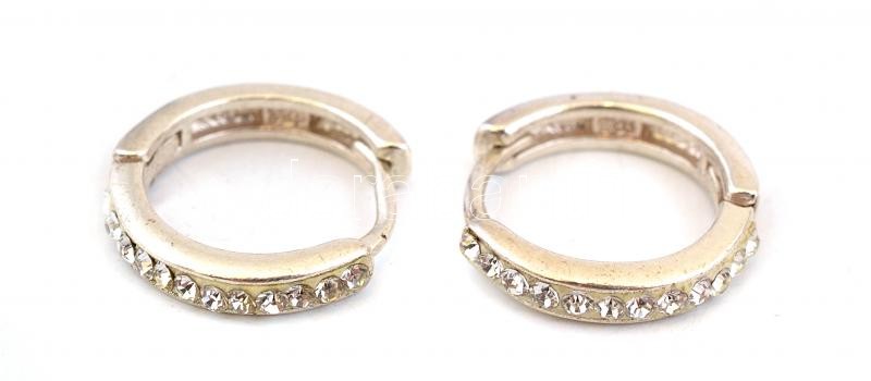 Leírás: Ezüst(Ag) apró kövekkel díszített karikafülbevaló-pár, jelzett, d: 1,3 cm, bruttó: 2,6 g