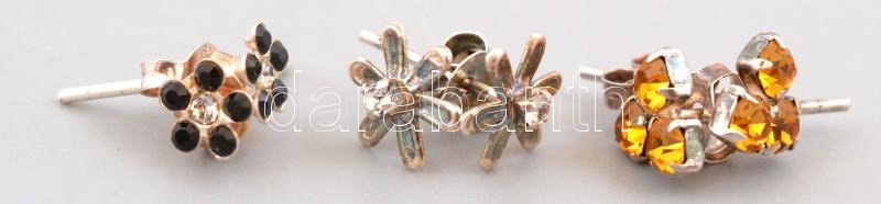 Leírás: Ezüst(Ag) apró szintetikus kövekkel díszített fülbevalópár, 3 db, jelzett, bruttó: 1,4 g