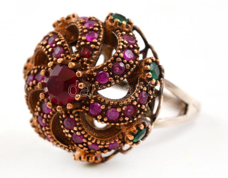 Leírás: Ezüst(Ag) gyűrű, színes kövekkel, jelzett, méret: 58, bruttó: 12,4 g