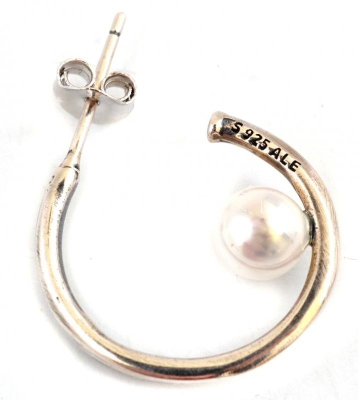 Leírás: Ezüst(Ag) karikafülbevaló-pár gyönggyel, Pandora jelzéssel, d: 2 cm, bruttó: 2,7 g
