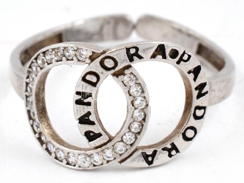 Leírás: Ezüst(Ag) kétkarikás gyűrű, állítható méret, Pandora jelzéssel, bruttó: 1,6 g