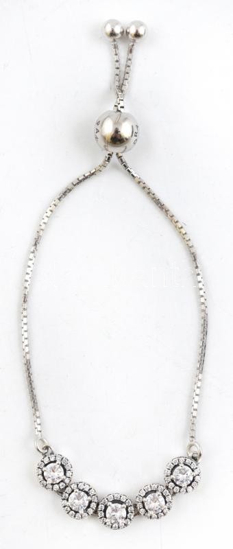 Leírás: Ezüst(Ag) kövekkel díszített karkötő, Pandora jelzéssel, állítható h: max. 16 cm, bruttó: 5 g