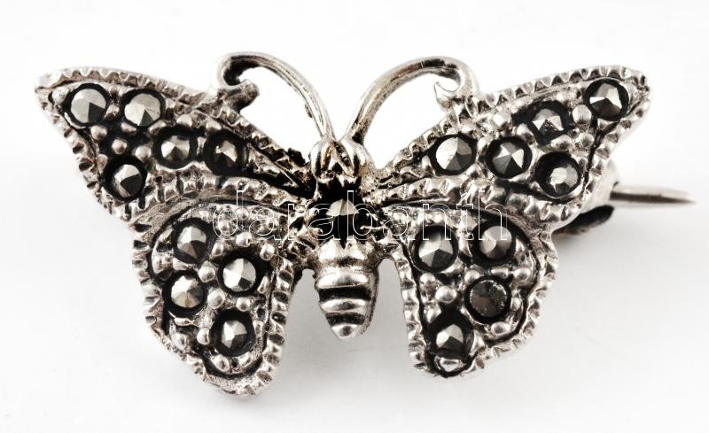 Leírás: Ezüst(Ag) markazit kövekkel díszített bross, jelzett, 2,5×1,5 cm