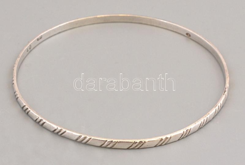 Leírás: Ezüst(Ag) mintás karperec, jelzett, d: 6,8 cm, nettó: 6,9 g