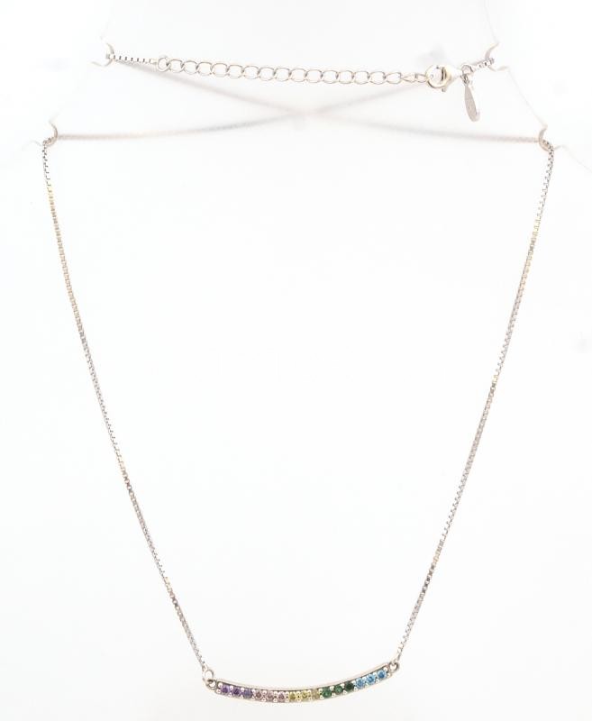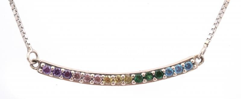 Leírás: Ezüst(Ag) nyaklánc, színes kövekkel, Pandora jelzéssel, állítható h: max. 48 cm, bruttó: 4,3 g