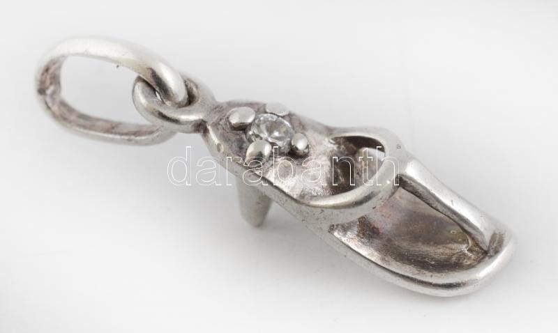 Leírás: Ezüst(Ag) papucs függő, apró kővel, jelzett, h: 1,5 cm, bruttó: 1,1 g