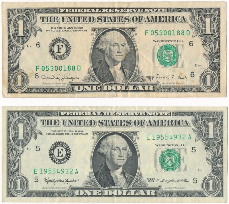 Amerikai Egyesült Államok 1963. 1$ + 1988. 1$ T:III foltos