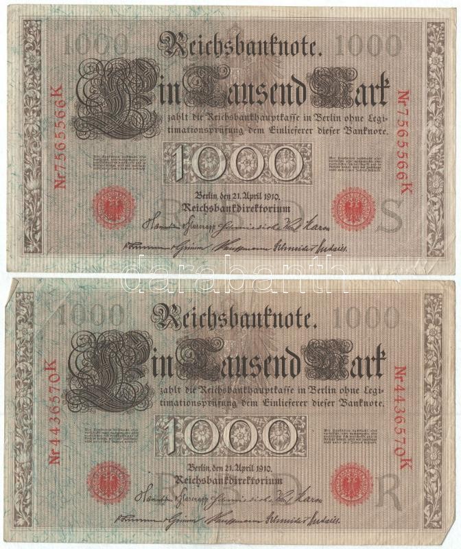 Német Birodalom 1908. 100M + 1910. 1000M (2x) + 1917. 5M (2x) + 1918. 20M T:III,III- German Empire 1908. 100 Mark + 1910. 1000 Mark (2x) + 1917. 5 Mark (2x) + 1918. 20 Mark C:F,VG