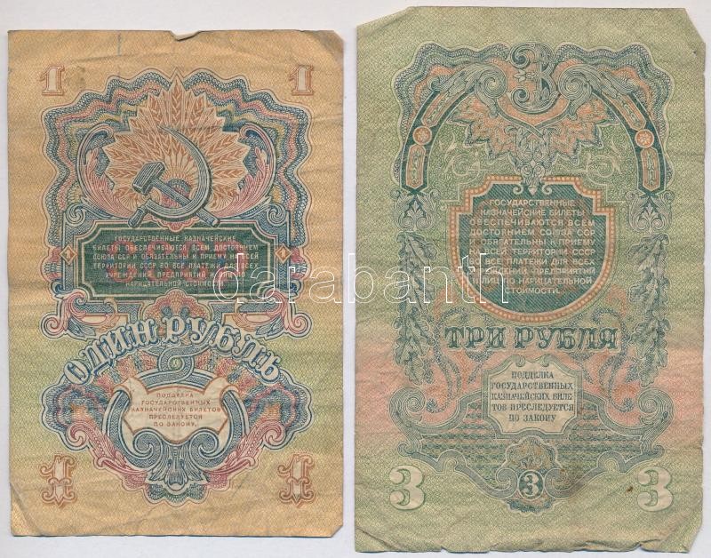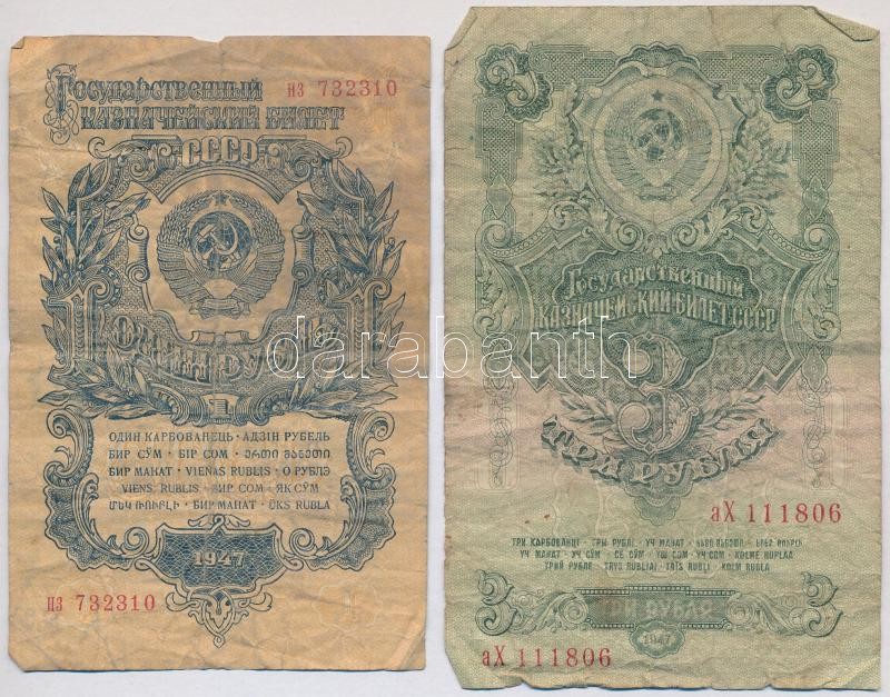 Soviet Union 1947. 1 Ruble + 3 Rubl... https://www.darabanth.com/hu/370-Gyorsarveres/370.0/Numizmatika/Kulfoldi-bankjegyek~2000014/Szovjetunio-1947-1R-plus-3R-TIII--Soviet-Union-1947-1-Ruble-plus-3-Rubles-CVG-Krause23216-218~II2146034