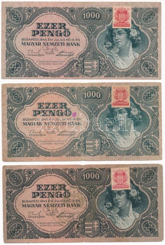 1945. 1000P (3x) "MNB" bélyeggel, egyik "Budapesti Érem... https://www.darabanth.com/hu/370-Gyorsarveres/370.0/Numizmatika/Magyar-bankjegyek~2000007/1945-1000P-3x-MNB-belyeggel-egyik-Budapesti-Eremgyujtok-Egyesulete-korpecsettel-TII-~II2155850