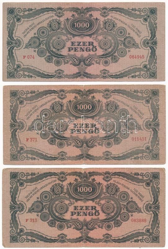 Leírás: 1945. 1000P (3x) "MNB" bélyeggel, egyik "Budapesti Éremgyűjtők Egyesülete" körpecséttel T:II-,III Adamo P22e