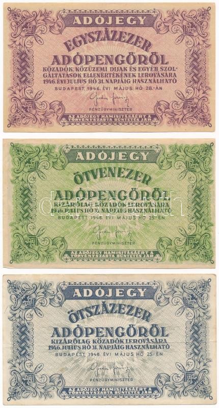 Leírás: 1946. 50.000AP + 100.000AP + 500.000AP mind sorszám nélküli T:I-,III