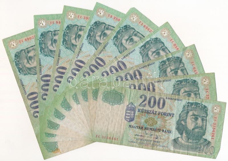 1998-2007. 200Ft (9x) T:III fo. Adamo F53E2,F53F2,F53G,F53G1,F53G2 https://www.darabanth.com/hu/370-Gyorsarveres/370.0/Numizmatika/Magyar-bankjegyek~2000007/1998-2007-200Ft-9x-TIII-fo-Adamo-F53E2-F53F2-F53G-F53G1-F53G2~II2157844
