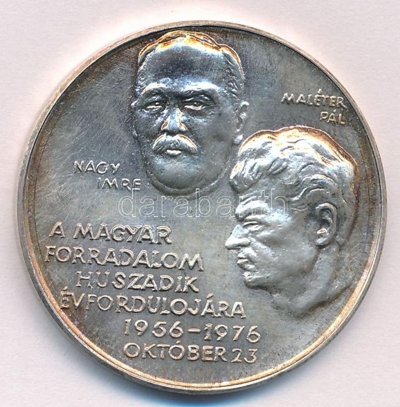 1976. "A Magyar Forradalom évfordulójára - Nagy Imre, Maléter Pál / In honour to the Hungarian Revolution Oktober 23. 1956" Ag emlékérem dísztokban(24g/0.999/38mm) T:BU patina