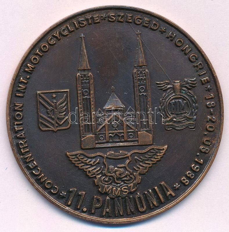 Leírás: 1988. "MMSZ (Magyar Motoros Szövetség) 11. Pannónia Nemzetközi Motoros Találkozó, Szeged, Magyarország, 1988.08.18-20." francia nyelvű egyoldalas Br emlékérem (50mm) T:2