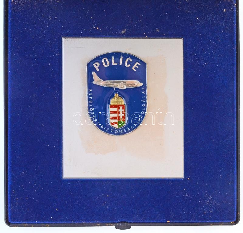 ~1990. "Police Repülőtéri Biztonsági Szolgálat" zománcozott ... https://www.darabanth.com/hu/370-Gyorsarveres/370.0/Numizmatika/Magyar-emlekveretek-plakettek~2000009/7E1990-Police-Repuloteri-Biztonsagi-Szolgalat-zomancozott-fem-plakett-tokban-90x104mm-T1~II2156179